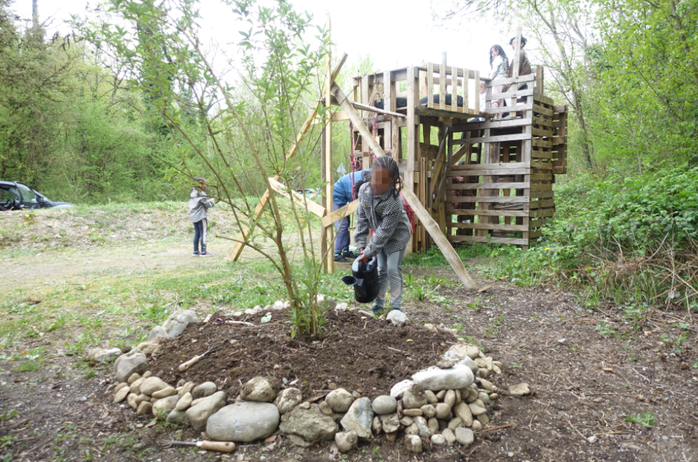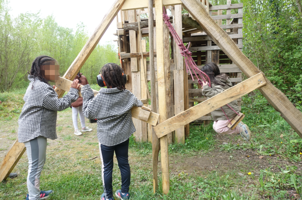 Pendant que les grands sont à l’Agora, les enfants investissent le Terrain d’Aventures pour faire de la balançoire, jouer, planter des graines de fleurs !