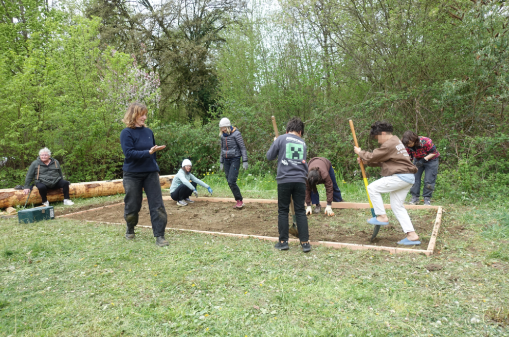 Ce grand chantier est aussi le fruit d’un travail avec le Collectif etc qui, tout à la fois architecte, artiste et artisan, propose des réponses créatives, décalées, joyeuses et constructives, aux questions que posent l’aménagement des espaces collectifs, en milieu urbain ou rural. Merci à Aluna, Alizée et Benjamin pour leur expérience et leur présence créatives, décalées, joyeuses et constructives !