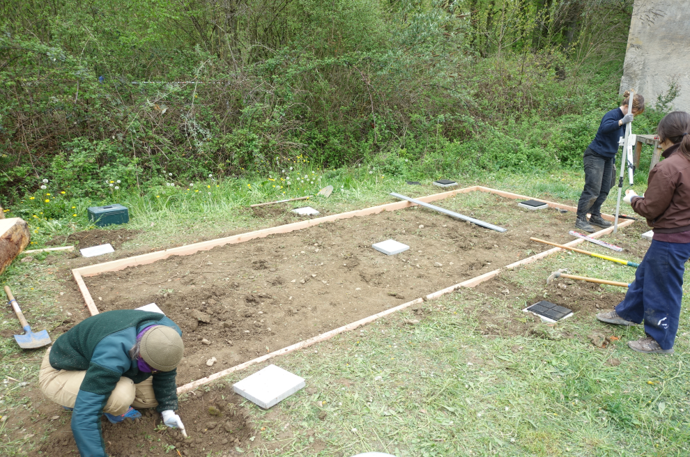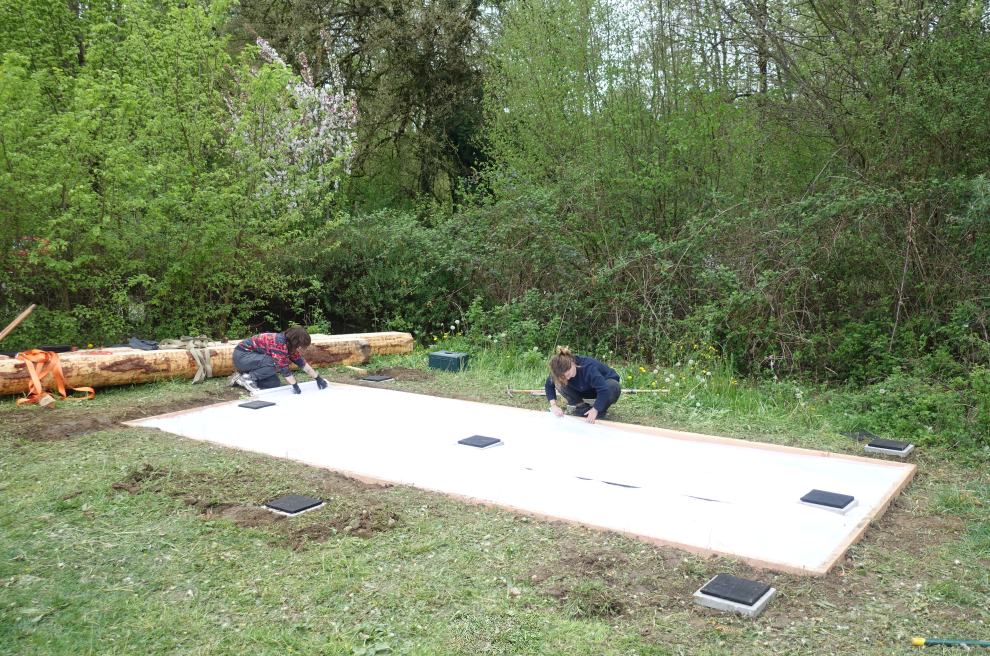 Le cadre est posé, reste à installer les plots qui serviront de supports aux grumes.