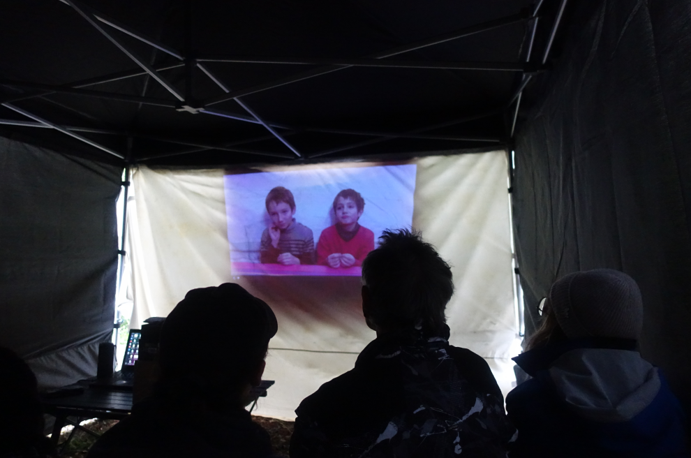 Pour clôturer cette journée, nous avons installé notre cinéma de plein air pour visionner et discuter autour d’un documentaire de Robert Millin, proposé par Luc. La démarche de cet artiste ressemblait pour Luc à la démarche du Cri de l’œuf. Quelques petits soucis technique ne nous ont pas permis d’aller jusqu’au bout. Ce n’est que partie remise.