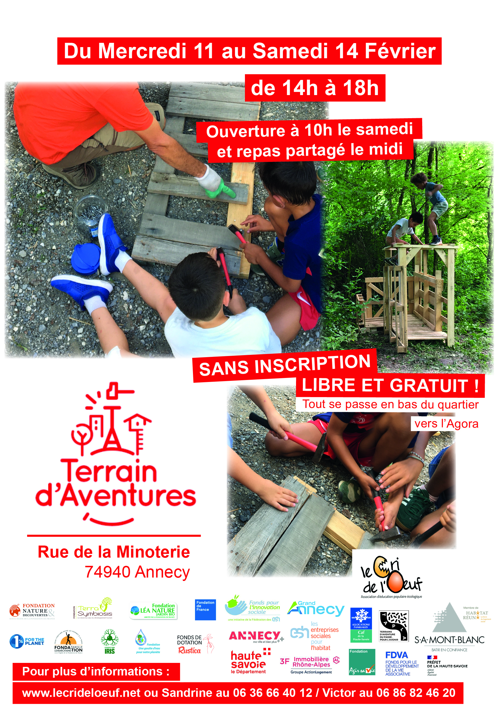 Retrouvez-nous du mercredi 11 au samedi 14 février sur le terrain d’aventures de la Minoterie.